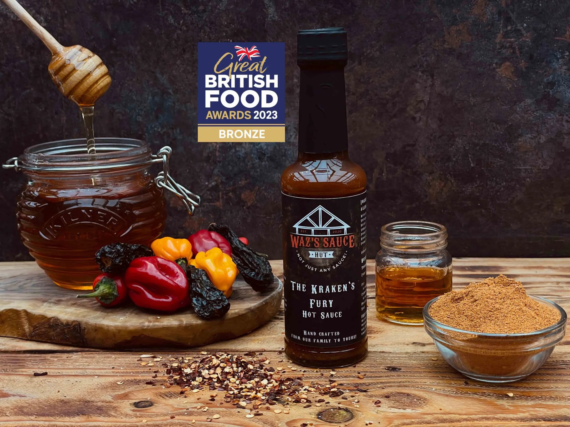For all you hot sauce lovers out there, you asked for heat…. I’ve brought you HEAT but just enough to leave you with a great kick yet not overpowering you lose the gorgeous layers of flavour I bring to my sauces. Taste the silky, sweet honey first as your tastebuds then move onto complex notes of various spices from good quality rum, after which follows smokey Hickory undertones. But then…. that fabulous, carefully selected blends of Naga Ghost Chilli, Chipotle – to name a few – delivers that explosion of heat at the end! Proud winner of The Great British Food awards 2023!